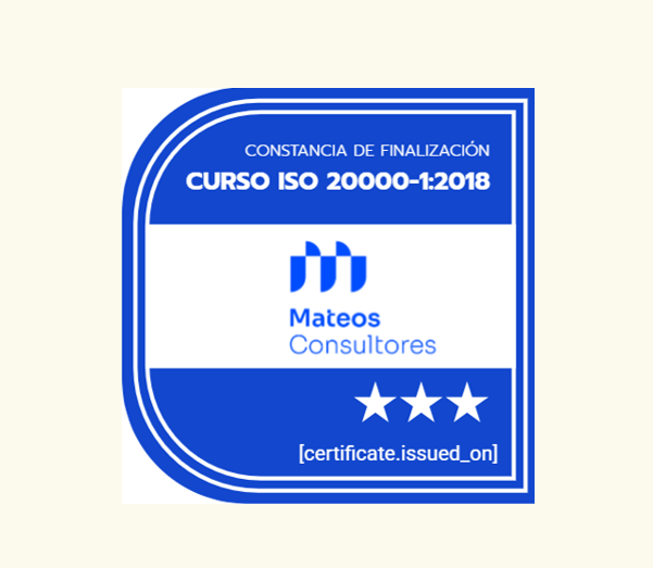 - El acceso durante 30 días naturales - La posibilidad de hacer un examen al finalizar el curso (solicitándolo a Mateos Consultores) y, en caso de acreditarlo, un certificado y badge digital (que podrás publicar en redes sociales como LinkedIn), avalando tu conocimiento. (Badge de ejemplo en la imagen)